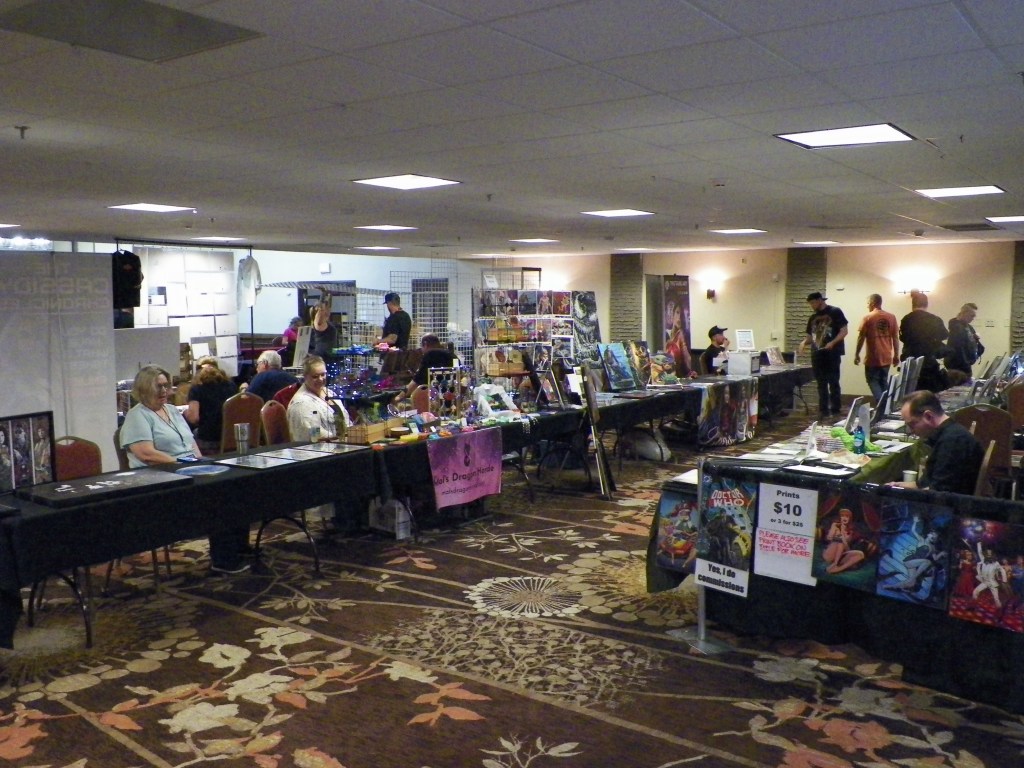 I started motoring my way up to Casper around 8:00 a.m. local time and arrived at the Best Western roughly an hour and a half later. Collecting my weekend pass, I began wandering among the small collection of vendors. In a simple explanation, the convention’s layout consisted of a long, narrow, rectangular hallway that connected to a larger, partially divided rectangle.