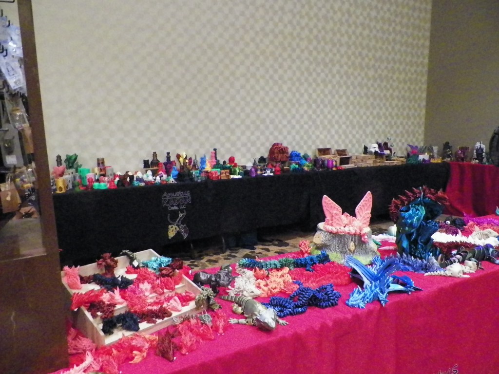 The new faces among the entrepreneurs were Tourney Treasures and Debbie Ngo Art. I purchased a small dice tray and a pair of dice sets from the former and a wonderful print of a dragon hoarding a dice set from the latter. I also met the entrepreneurs of Brink of Annihilation, Robin’s Nerd Supplies, and Tipsy Druid Studio.