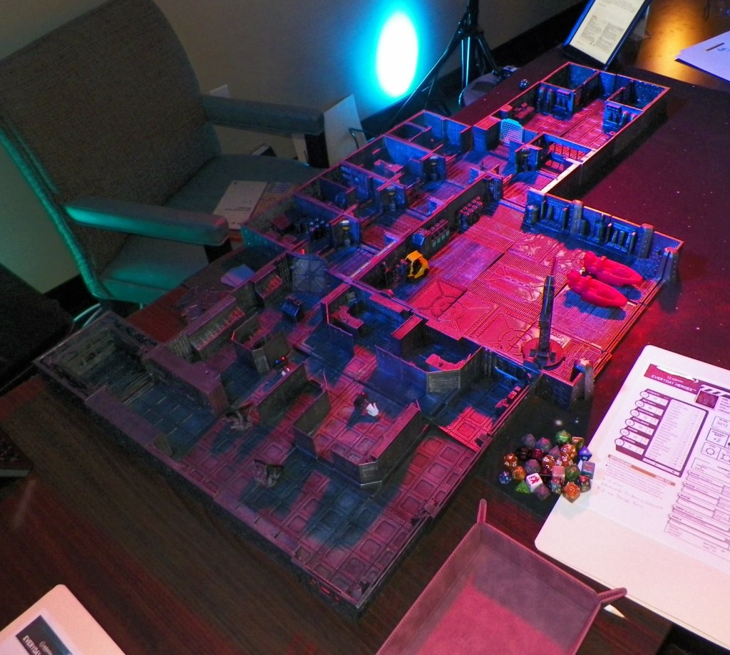 Quickly jumping back to Thursday, while milling around the sign-in booth, I eavesdropped on a conversation between a couple of volunteers and a lady who was hosting a game of D&D 5E. I queried about the session and gleaned the details. At 9:00 a.m. the next day, I found myself as part of a four man exploration team to a strange desert on behalf of Moon Gate Exploration Co. Plundering an ancient temple is always a good way to start to a convention.
